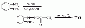 1.由鄰苯三胺與亞硝酸鈉反應(yīng)而得。將鄰苯二胺加入50℃水中溶解,再加入冰醋酸,降溫至5℃,加入亞硝酸鈉攪拌反應(yīng)。反應(yīng)物漸漸變成暗綠色,溫度升至70-80℃,溶液變?yōu)榻奂t色,于室溫放置2h,冷卻,濾出結(jié)晶,用冰水洗滌,干燥得粗品,將粗品減壓蒸餾,收集201-204℃(2.0kPa)的餾分,再用苯重結(jié)晶,可得熔點(diǎn)為96-97℃的產(chǎn)品,產(chǎn)率80%左右。曾有報道用亞硝酸鈉處理多菌靈的縮合廢水而得副產(chǎn)物苯并三氮唑。